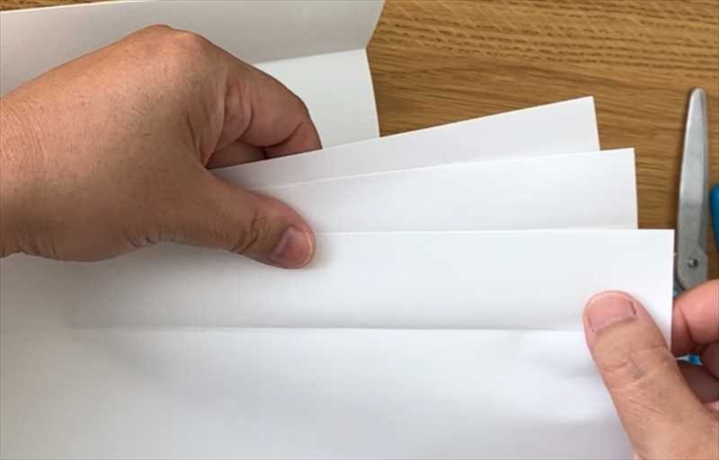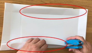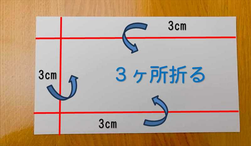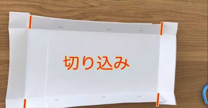 長い辺の4ヶ所にハサミで切り込みを入れます
