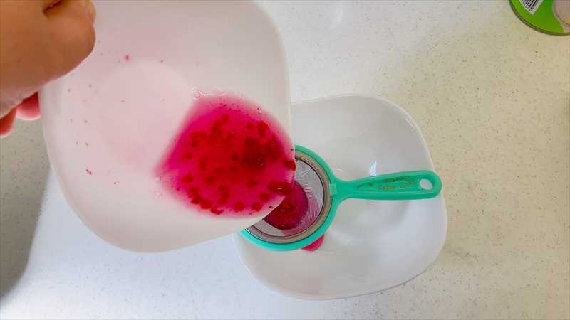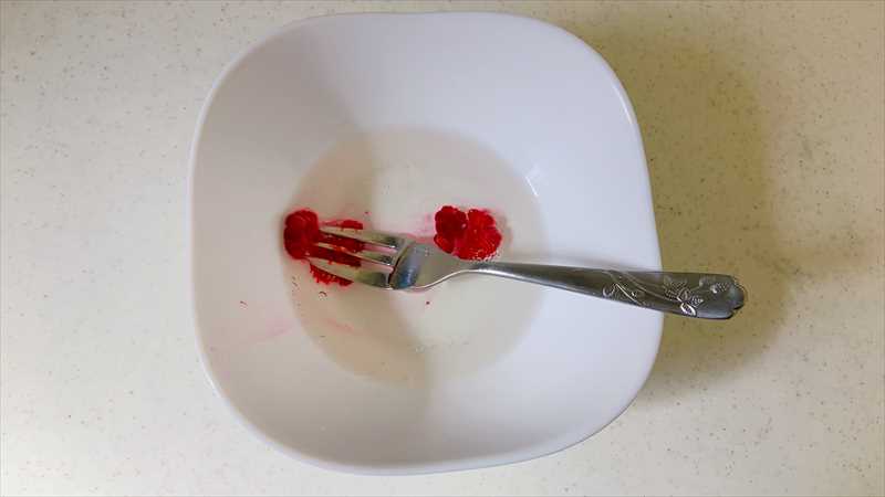 ラズベリーをつぶして色を出します。