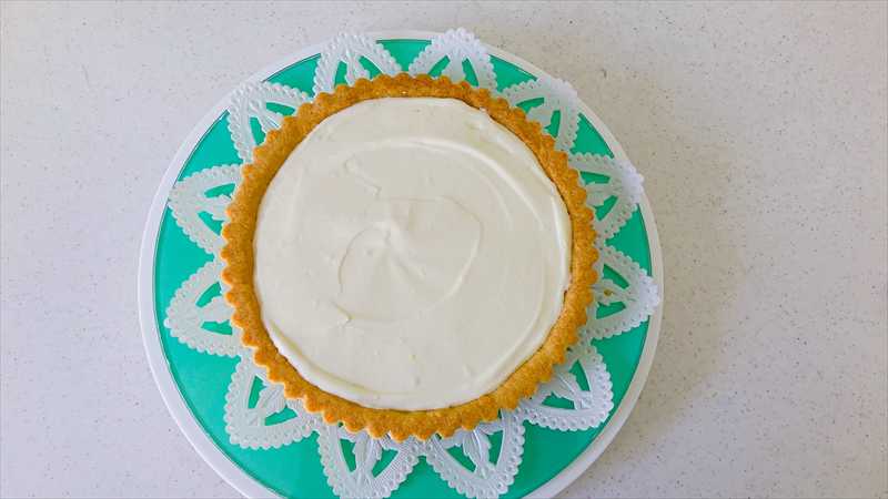 デュプロマットクリームをタルト台に流し入れ