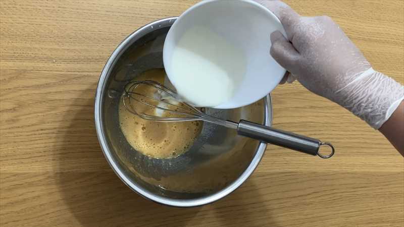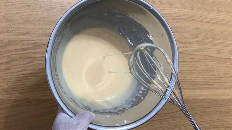 泡立て器でダマが無くなるまでよく混ぜる
