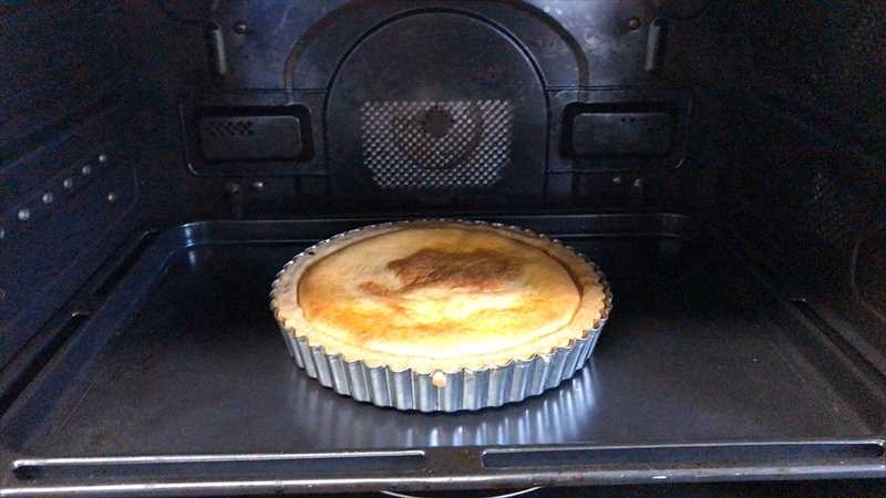 別レシピ「ベイクドチーズタルト」を作りオーブンで焼きます。