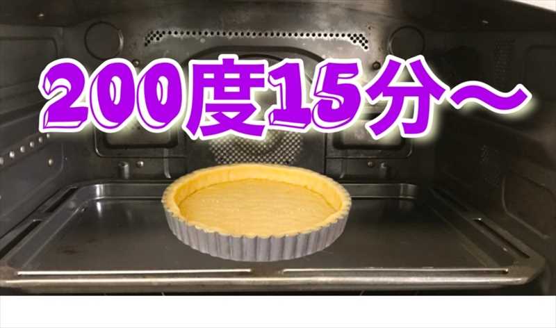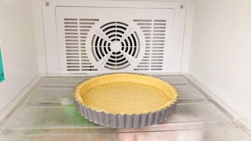 - タルト台をアルミホイルの上に直接乗せ、150℃に予熱したオーブンで5分程度加熱します。